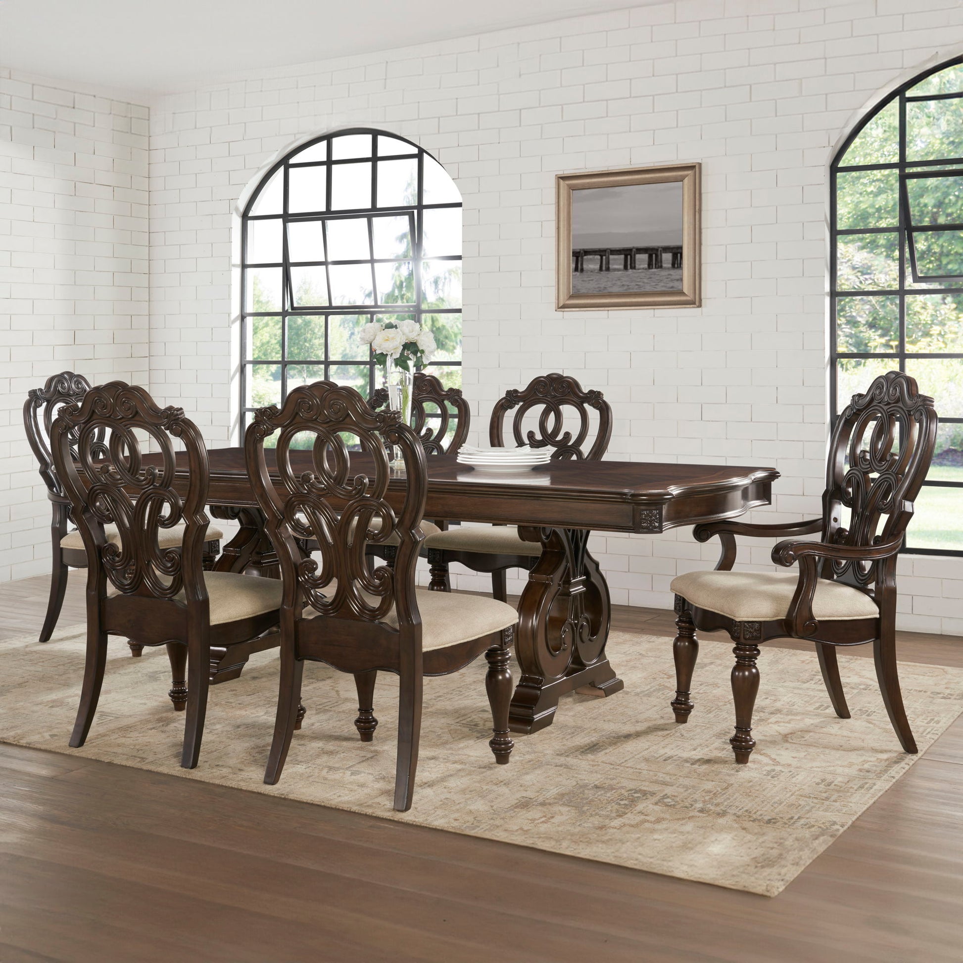 Royale - 7 Piece Arm Chair Dining Set (Table, 4 Side Chairs, 2 Arm Chairs) - Brown